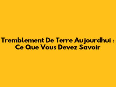 Tremblement De Terre Aujourd'hui : Ce Que Vous Devez Savoir