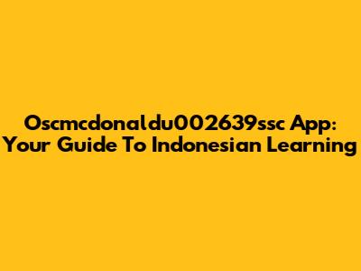 Oscmcdonaldu002639ssc App: Your Guide To Indonesian Learning