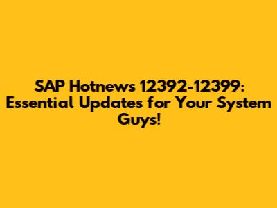 Alright, fellow SAP enthusiasts, let's dive into some seriously important stuff that just dropped from SAP. We're talking about SAP Hotnews 12392 through 12399. Now, I know "Hotnews" might sound a bit dramatic, but trust me, these notes are crucial for keeping your SAP landscape running smoothly, securely, and efficiently. Think of them as critical patches and updates that address bugs, enhance performance, and bolster security. Ignoring these can lead to all sorts of headaches down the line, from system slowdowns to potential security vulnerabilities. So, grab your coffee, settle in, and let's break down what these SAP Hotnews mean for you and your organization. We'll go over why they're so important, how they impact different modules, and what you should be doing to ensure they're implemented correctly. It's not just about ticking a box; it's about proactive system management that saves you time, money, and a whole lot of stress in the long run. Let's get started!