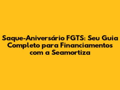 Now, here's where it gets really interesting, specially when we talk about Financiamento. The annual withdrawals from your Saque-Aniversário can be used as collateral for loans. This opens up a whole new world of opportunities, particularly when it comes to financing. And that's where companies like Seamortiza come in. They specialize in offering financing options tied to your Saque-Aniversário, making it easier than ever to access the funds you need.