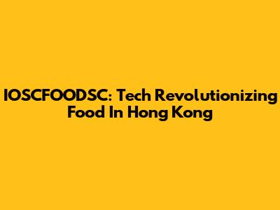 IOSCFOODSC: Tech Revolutionizing Food In Hong Kong