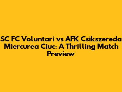 Get ready, football fans! The clash between SC FC Voluntari and AFK Csikszereda Miercurea Ciuc is just around the corner. This match promises to be an exciting encounter, filled with tactical battles and thrilling moments. Whether you're a die-hard supporter or just a casual observer, this preview will give you all the insights you need before the game begins. Let's dive deep into what makes this matchup so compelling.
