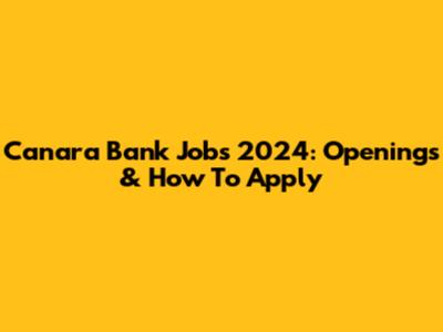 Canara Bank Jobs 2024: Openings & How To Apply