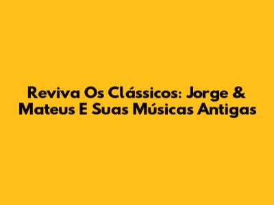 Reviva Os Clássicos: Jorge & Mateus E Suas Músicas Antigas