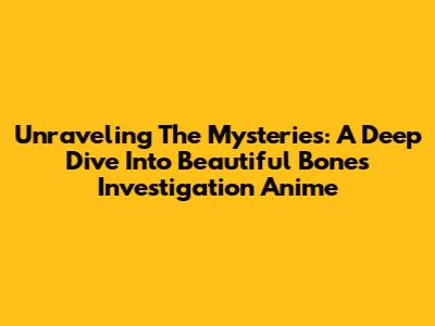 Unraveling The Mysteries: A Deep Dive Into Beautiful Bones Investigation Anime