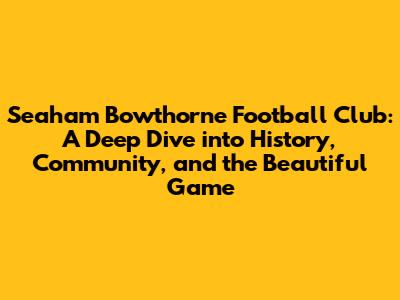 Hey everyone! Ever heard of Seaham Bowthorne Football Club? If you're a football fanatic, especially if you're local to Seaham, chances are you have! But, even if you haven't, stick around because we're diving deep into the heart of this fantastic club. We'll explore its history, the amazing role it plays in the community, and of course, the beautiful game of football itself. Get ready for a journey filled with passion, dedication, and the thrill of the sport!