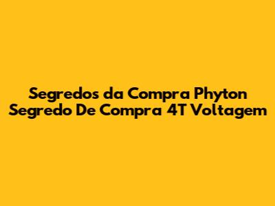 Dicas Extras Para Uma Compra Inteligente do Seu Phyton Segredo De Compra 4T Voltagem