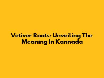 Vetiver Roots: Unveiling The Meaning In Kannada