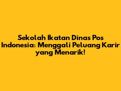 Sekolah Ikatan Dinas Pos Indonesia menawarkan peluang karir yang menarik bagi kalian yang ingin berkarir di dunia logistik dan komunikasi. Dengan kepastian kerja, gaji dan tunjangan yang menarik, pengalaman kerja yang berharga, dan kesempatan pengembangan karir, sekolah ini bisa menjadi pilihan yang tepat untuk meraih karir impian kalian. Jangan ragu untuk mempersiapkan diri dengan baik dan mengikuti semua tahapan seleksi. Semoga sukses dan raihlah karir yang gemilang di PT Pos Indonesia! Dengan dedikasi dan kerja keras, kalian pasti bisa! Semangat terus! Kalian yang tertarik dengan dunia logistik dan komunikasi, jangan lewatkan kesempatan emas ini. Persiapkan diri kalian sebaik mungkin dan raihlah karir impianmu di Pos Indonesia!
