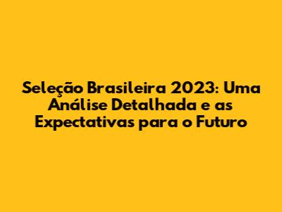 As projeções para o futuro da Seleção Brasileira são otimistas. Com a nova comissão técnica, o novo estilo de jogo e o talento dos jogadores, a equipe tem tudo para evoluir e conquistar títulos importantes. A expectativa é que a Seleção Brasileira volte a ser uma das principais potências do futebol mundial, encantando a torcida com um futebol bonito e eficiente. A torcida acredita na equipe e está pronta para apoiar a Seleção Brasileira em cada jogo. O futuro é promissor, e a esperança é grande. Vamos torcer e vibrar com a Canarinho!