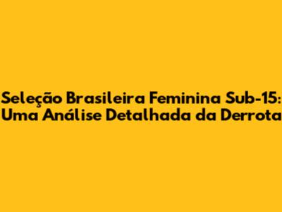 A Seleção Brasileira Feminina Sub-15 enfrentou um desafio e tanto, e como toda partida de futebol, teve seus altos e baixos. A derrota sempre traz consigo um turbilhão de emoções, e é crucial analisar o ocorrido de maneira construtiva. Este artigo se propõe a fazer justamente isso, mergulhando nos detalhes da partida, examinando o desempenho das jogadoras, destacando os pontos cruciais e, claro, vislumbrando os próximos passos para o desenvolvimento da equipe. Preparem-se para uma análise completa, com linguagem acessível e foco na evolução do futebol feminino.