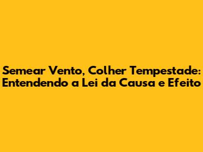A expressão "semear vento, colher tempestade" é um poderoso lembrete da nossa responsabilidade pela nossa vida. Cada ação, cada palavra, cada pensamento é uma semente que plantamos no solo fértil do universo. A colheita é inevitável, e depende inteiramente do que semeamos. Ao compreendermos a lei da causa e efeito, podemos tomar decisões mais conscientes, evitar ações que geram sofrimento e cultivar atitudes que promovam a felicidade e o bem-estar.