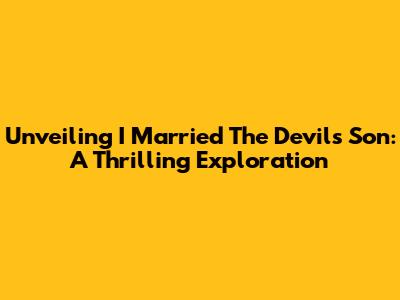 Unveiling 'I Married The Devil's Son': A Thrilling Exploration