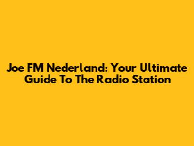 Joe FM Nederland: Your Ultimate Guide To The Radio Station