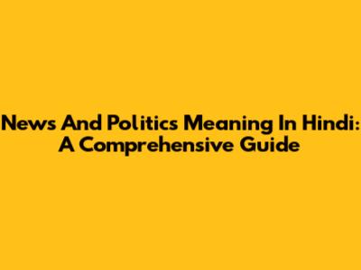 News And Politics Meaning In Hindi: A Comprehensive Guide
