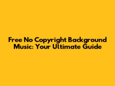 Free No Copyright Background Music: Your Ultimate Guide