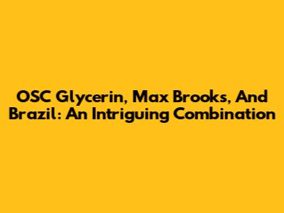 OSC Glycerin, Max Brooks, And Brazil: An Intriguing Combination