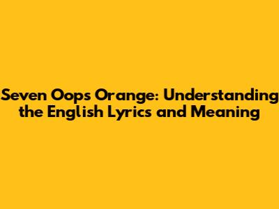 Hey there, music lovers! Ever found yourself humming along to a catchy tune, only to realize you have no clue what the lyrics actually mean? Today, we're diving deep into the vibrant world of Seven Oops, specifically their awesome song Orange. We'll explore the English translation of the lyrics, unpack the song's underlying themes, and maybe even learn a thing or two about the band themselves. So, grab your headphones, get comfy, and let's get started!