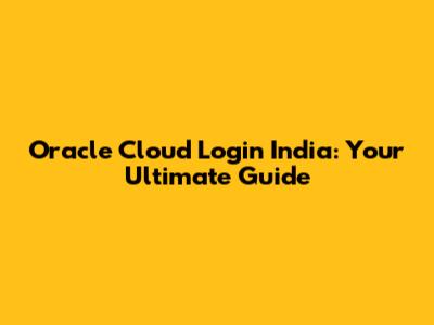 Oracle Cloud Login India: Your Ultimate Guide