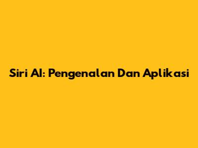 Siri AI: Pengenalan Dan Aplikasi