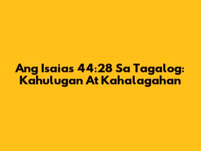 Ang Isaias 44:28 Sa Tagalog: Kahulugan At Kahalagahan