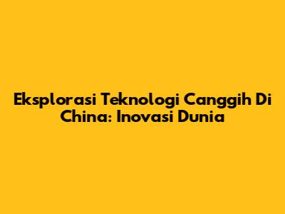 Eksplorasi Teknologi Canggih Di China: Inovasi Dunia