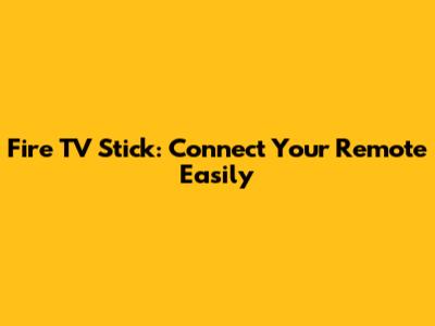 Fire TV Stick: Connect Your Remote Easily