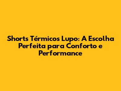 Conclusão: Invista em Conforto e Performance com os Shorts Térmicos Lupo