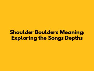 Hey guys! Ever wondered what a song really means? Let's dive deep into the meaning behind "Shoulder Boulders." This song has been making waves, and for good reason. It's packed with emotion, imagery, and a message that resonates with many. So, grab your headphones, get comfy, and let’s unpack this track together, bit by bit. We'll explore the lyrics, the context, and the overall vibe to truly understand what the artist is trying to convey. Whether you're a die-hard fan or just curious, there's something here for everyone. So buckle up, let's unravel the enigma that is "Shoulder Boulders" and discover the profound message it holds within its melodies and verses.