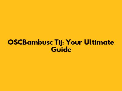 OSCBambusc Tij: Your Ultimate Guide