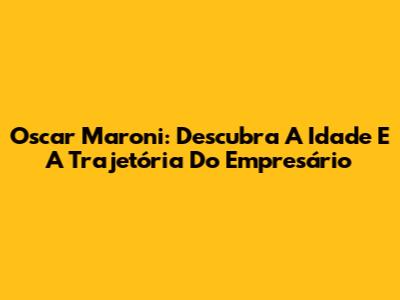 Oscar Maroni: Descubra A Idade E A Trajetória Do Empresário