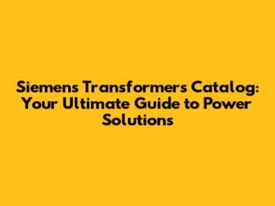 Siemens Transformers Catalog: Your Ultimate Guide