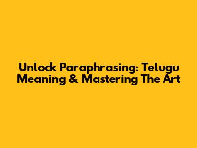 Unlock Paraphrasing: Telugu Meaning & Mastering The Art
