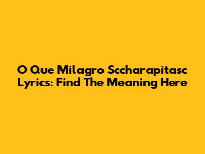 O Que Milagro Sccharapitasc Lyrics: Find The Meaning Here