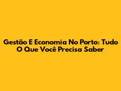 Gestão E Economia No Porto: Tudo O Que Você Precisa Saber