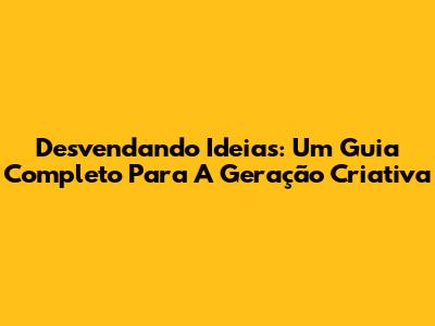 Desvendando Ideias: Um Guia Completo Para A Geração Criativa