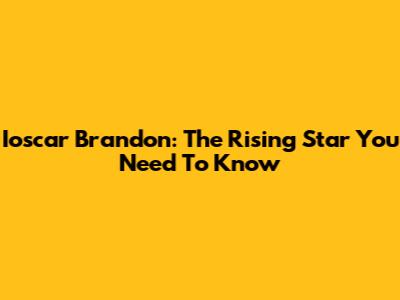 Ioscar Brandon: The Rising Star You Need To Know