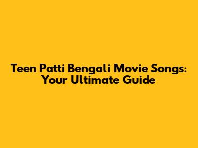 Teen Patti Bengali Movie Songs: Your Ultimate Guide
