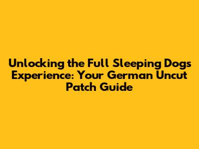 Hey there, gamers! Ever felt like your copy of Sleeping Dogs was missing a little oomph? Maybe you heard whispers of a more intense, uncensored version and wondered how to get your hands on it, especially if you're in Germany or dealing with region-locked content. Well, you've come to the right place, guys! We're diving deep into the world of the Sleeping Dogs German Uncut Patch, a topic that’s near and dear to many a fan’s heart. This isn't just about gore; it's about experiencing Wei's brutal journey through the Triad underworld exactly as the developers intended. We'll cover what the patch is, why you might need it, and most importantly, how you can (legally and ethically, of course!) get this enhanced version of the game. So, grab your favorite controller, settle in, and let’s get this sorted!