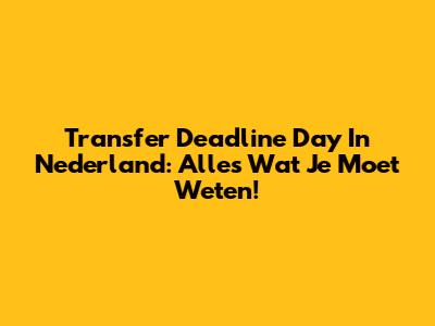 Transfer Deadline Day In Nederland: Alles Wat Je Moet Weten!