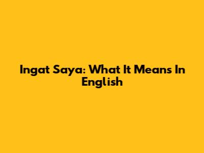 Ingat Saya: What It Means In English