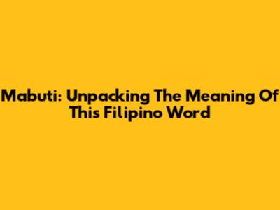 Mabuti: Unpacking The Meaning Of This Filipino Word