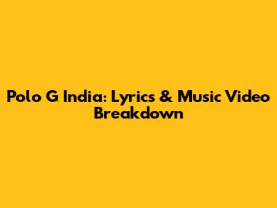Polo G India: Lyrics & Music Video Breakdown