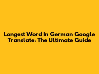 Longest Word In German Google Translate: The Ultimate Guide