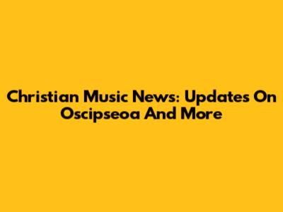 Christian Music News: Updates On Oscipseoa And More