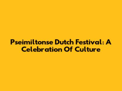 Pseimiltonse Dutch Festival: A Celebration Of Culture
