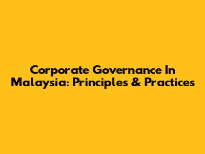 Corporate Governance In Malaysia: Principles & Practices