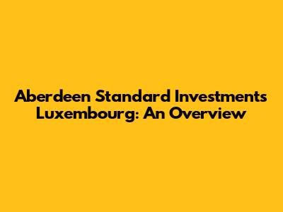 Aberdeen Standard Investments Luxembourg: An Overview