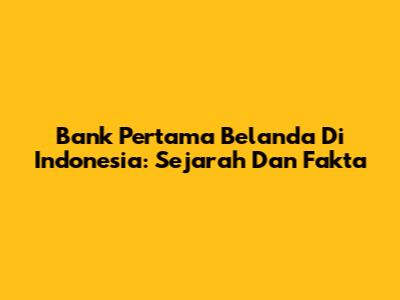 Bank Pertama Belanda Di Indonesia: Sejarah Dan Fakta
