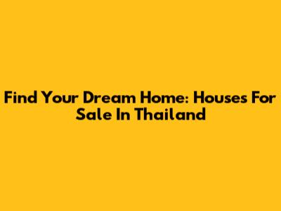Find Your Dream Home: Houses For Sale In Thailand